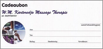 Ook te verkrijgen, massage cadeaubon t.w.v. 65.- euro